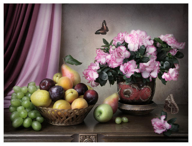 Автор medea-30 загрузил эту картинку чтобы создать схему вышивки «# 120007». Размер данной вышивки равен 190x144 крестов, при этом используется 59 цветов. Ключевые слова, по которым можно найти эту схему: картина, живопись, красота, натюрморт, цветы, фрукты, бабочка. Также, вы можете взглянуть на предварительный просмотр, соответствующий данной схеме вышивки.