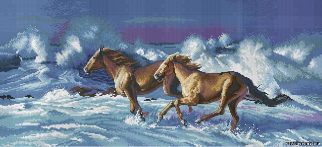 Автор -tatka- загрузил эту картинку чтобы создать схему вышивки «Бегущие по волнам». Размер данной вышивки равен 190x87 крестов, при этом используется 53 цветов. Ключевые слова, по которым можно найти эту схему: животные, лошадь, конь. Также, вы можете взглянуть на предварительный просмотр, соответствующий данной схеме вышивки.