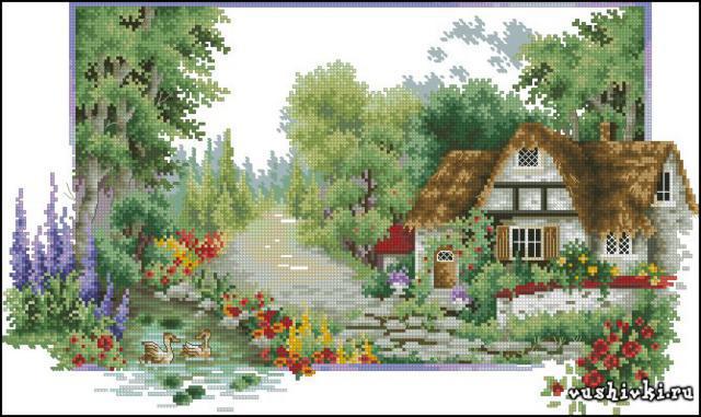 Автор vialka_88 загрузил эту картинку чтобы создать схему вышивки «Домик». Размер данной вышивки равен 190x113 крестов, при этом используется 44 цветов. Ключевые слова, по которым можно найти эту схему: дом, лето, цветы, сад, пейзаж, картина. Также, вы можете взглянуть на предварительный просмотр, соответствующий данной схеме вышивки.