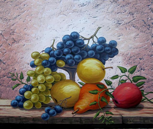 Автор xa00p3857 загрузил эту картинку чтобы создать схему вышивки «Натюрморт». Размер данной вышивки равен 190x160 крестов, при этом используется 80 цветов. Ключевые слова, по которым можно найти эту схему: натюрморт, кухня, фрукты, виноград, яблоки, груша. Также, вы можете взглянуть на предварительный просмотр, соответствующий данной схеме вышивки.