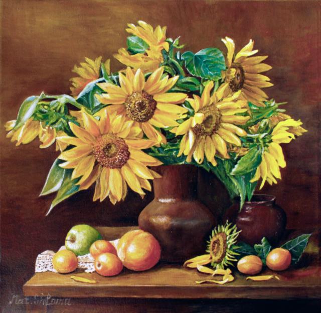 Автор VA903M загрузил эту картинку чтобы создать схему вышивки «Подсолнухи». Размер данной вышивки равен 190x185 крестов, при этом используется 50 цветов. Ключевые слова, по которым можно найти эту схему: подсолнухи, натюрморт. Также, вы можете взглянуть на предварительный просмотр, соответствующий данной схеме вышивки.