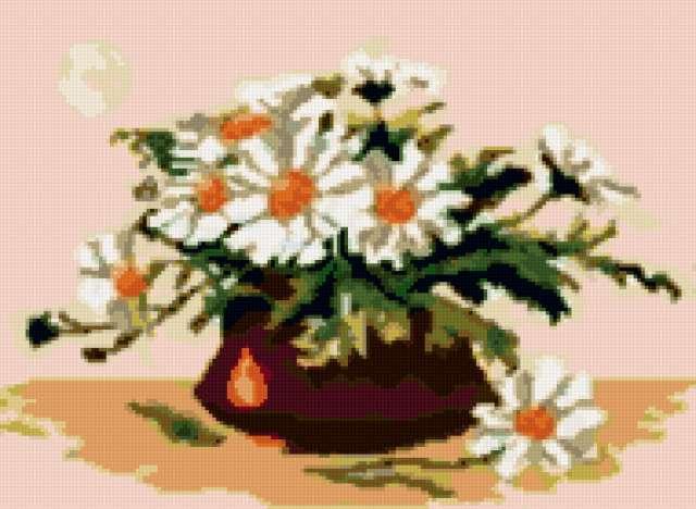 Автор ZINAIDA170950 загрузил эту картинку чтобы создать схему вышивки «Ромашки». Размер данной вышивки равен 190x139 крестов, при этом используется 17 цветов. Ключевые слова, по которым можно найти эту схему: цветы. Также, вы можете взглянуть на предварительный просмотр, соответствующий данной схеме вышивки.