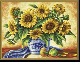 Автор Cadykova загрузил эту картинку чтобы создать схему вышивки «Солнечный букет». Размер данной вышивки равен 190x146 крестов, при этом используется 82 цветов. Ключевые слова, по которым можно найти эту схему: цветы, букет, подсолнухи, ваза, фрукты, груши, натюрморт. Также, вы можете взглянуть на предварительный просмотр, соответствующий данной схеме вышивки.