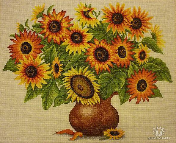 Автор polovinkamarinka загрузил эту картинку чтобы создать схему вышивки «Хх4576». Размер данной вышивки равен 190x154 крестов, при этом используется 42 цветов. Ключевые слова, по которым можно найти эту схему: картина, цветы, букет, подсолнухи. Также, вы можете взглянуть на предварительный просмотр, соответствующий данной схеме вышивки.
