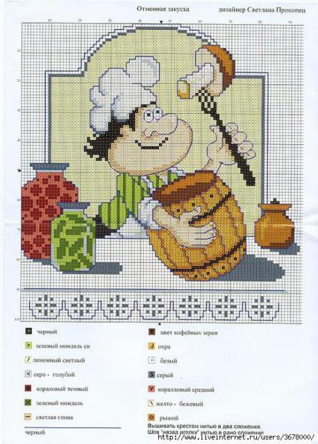 Автор gemini6 загрузил эту картинку чтобы создать схему вышивки «...». Размер данной вышивки равен 120x168 крестов, при этом используется 29 цветов. Ключевые слова, по которым можно найти эту схему: кухня. Также, вы можете взглянуть на предварительный просмотр, соответствующий данной схеме вышивки.