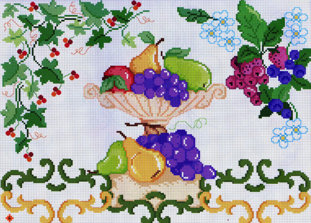 Автор gemini6 загрузил эту картинку чтобы создать схему вышивки «...». Размер данной вышивки равен 190x136 крестов, при этом используется 36 цветов. Ключевые слова, по которым можно найти эту схему: фрукты кухня натюрморт. Также, вы можете взглянуть на предварительный просмотр, соответствующий данной схеме вышивки.