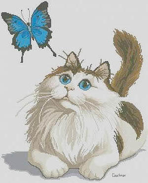 Автор Lamisa загрузил эту картинку чтобы создать схему вышивки «Variant 12». Размер данной вышивки равен 128x159 крестов, при этом используется 54 цветов. Ключевые слова, по которым можно найти эту схему: животные, кошки, бабочка. Также, вы можете взглянуть на предварительный просмотр, соответствующий данной схеме вышивки.