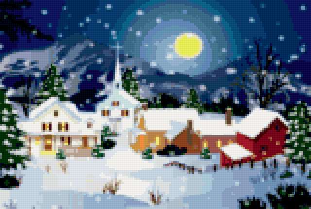 Ориентировочно так, схема вышивки « Серия-"Чудесница зима" », созданная автором Nadena_love, будет выглядеть при отшиве на канве. Размер данной вышивки равен 160x108 крестов, при этом используется 72 цветов. Ключевые слова, по которым можно найти эту схему: зима, волшебная. Также, вы можете взглянуть на оригинальную картинку, соответствующую данной схеме вышивки.
