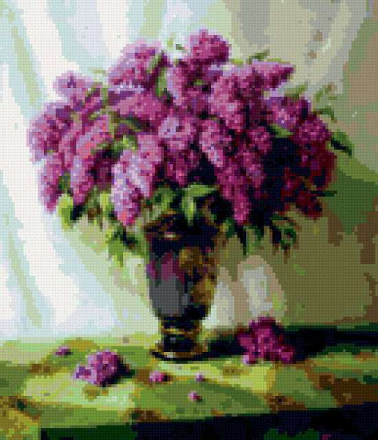 Ориентировочно так, схема вышивки «#127», созданная автором 02061987, будет выглядеть при отшиве на канве. Размер данной вышивки равен 129x150 крестов, при этом используется 46 цветов. Ключевые слова, по которым можно найти эту схему: цветы. Также, вы можете взглянуть на оригинальную картинку, соответствующую данной схеме вышивки.