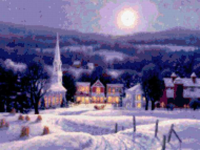 Ориентировочно так, схема вышивки «#165», созданная автором Svet-lana-OK, будет выглядеть при отшиве на канве. Размер данной вышивки равен 190x143 крестов, при этом используется 57 цветов. Ключевые слова, по которым можно найти эту схему: зима, природа, разное. Также, вы можете взглянуть на оригинальную картинку, соответствующую данной схеме вышивки.