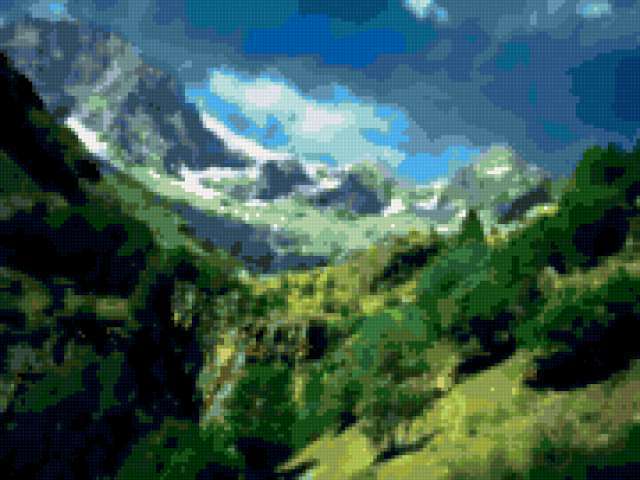 Ориентировочно так, схема вышивки «#65#», созданная автором dedkova, будет выглядеть при отшиве на канве. Размер данной вышивки равен 180x135 крестов, при этом используется 52 цветов. К несчастью, автор не назначил для схемы ключевые слова. Также, вы можете взглянуть на оригинальную картинку, соответствующую данной схеме вышивки.