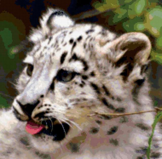 Ориентировочно так, схема вышивки «&1314», созданная автором Axlamonka, будет выглядеть при отшиве на канве. Размер данной вышивки равен 190x187 крестов, при этом используется 71 цветов. Ключевые слова, по которым можно найти эту схему: тигренок, подушка. Также, вы можете взглянуть на оригинальную картинку, соответствующую данной схеме вышивки.