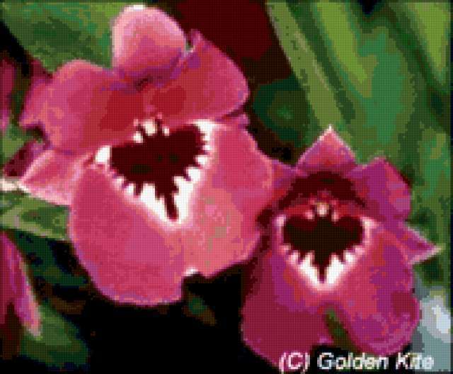 Ориентировочно так, схема вышивки «&1479», созданная автором Axlamonka, будет выглядеть при отшиве на канве. Размер данной вышивки равен 190x157 крестов, при этом используется 67 цветов. Ключевые слова, по которым можно найти эту схему: цветы, орхидеи. Также, вы можете взглянуть на оригинальную картинку, соответствующую данной схеме вышивки.