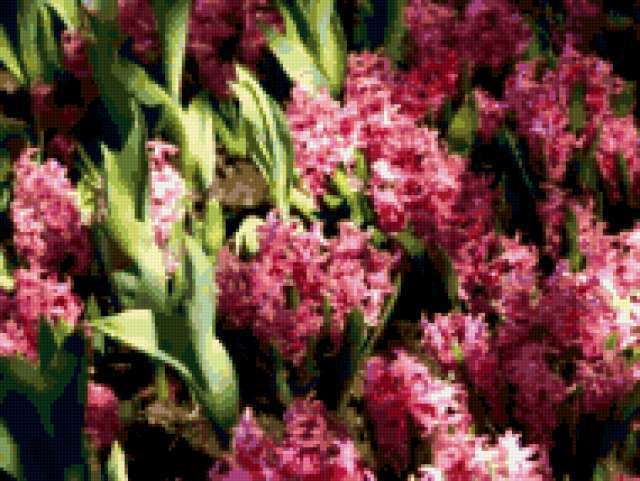 Ориентировочно так, схема вышивки «&173», созданная автором Axlamonka, будет выглядеть при отшиве на канве. Размер данной вышивки равен 190x143 крестов, при этом используется 78 цветов. Ключевые слова, по которым можно найти эту схему: цветы, гиацинты, весна, первоцветы. Также, вы можете взглянуть на оригинальную картинку, соответствующую данной схеме вышивки.