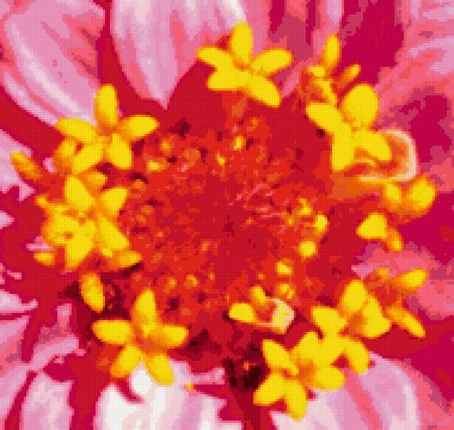 Ориентировочно так, схема вышивки «&1915», созданная автором Axlamonka, будет выглядеть при отшиве на канве. Размер данной вышивки равен 190x180 крестов, при этом используется 38 цветов. Ключевые слова, по которым можно найти эту схему: цветок. сердцевинка, подушка. Также, вы можете взглянуть на оригинальную картинку, соответствующую данной схеме вышивки.
