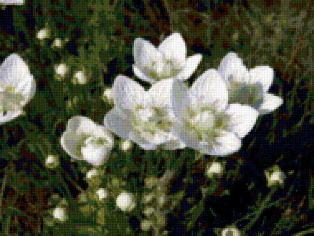 Ориентировочно так, схема вышивки «&2036», созданная автором Axlamonka, будет выглядеть при отшиве на канве. Размер данной вышивки равен 190x143 крестов, при этом используется 54 цветов. Ключевые слова, по которым можно найти эту схему: цветочки. Также, вы можете взглянуть на оригинальную картинку, соответствующую данной схеме вышивки.