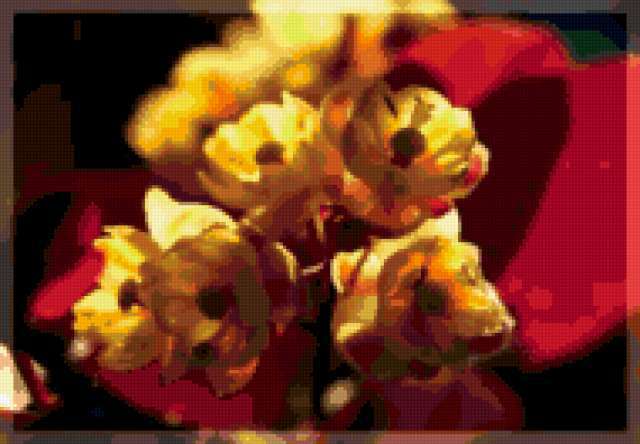 Ориентировочно так, схема вышивки «&2214», созданная автором Axlamonka, будет выглядеть при отшиве на канве. Размер данной вышивки равен 190x132 крестов, при этом используется 58 цветов. Ключевые слова, по которым можно найти эту схему: цветочки, барбарис. Также, вы можете взглянуть на оригинальную картинку, соответствующую данной схеме вышивки.
