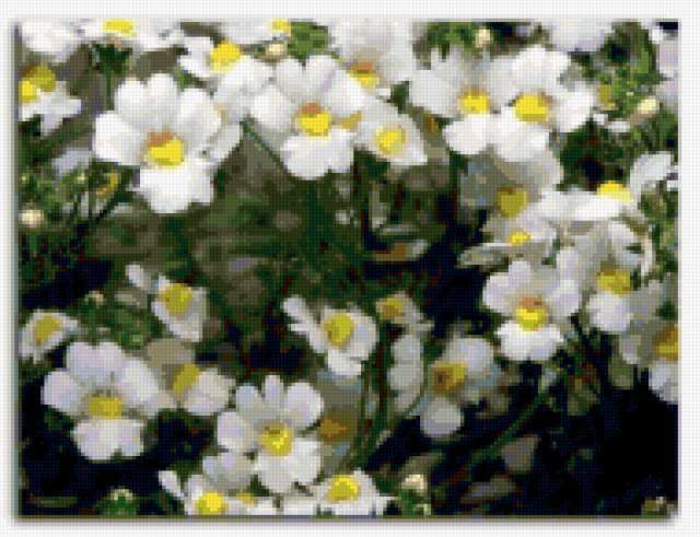 Ориентировочно так, схема вышивки «&2323», созданная автором Axlamonka, будет выглядеть при отшиве на канве. Размер данной вышивки равен 190x146 крестов, при этом используется 58 цветов. Ключевые слова, по которым можно найти эту схему: цветочки. Также, вы можете взглянуть на оригинальную картинку, соответствующую данной схеме вышивки.