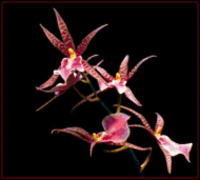 Ориентировочно так, схема вышивки «&2504», созданная автором Axlamonka, будет выглядеть при отшиве на канве. Размер данной вышивки равен 190x171 крестов, при этом используется 70 цветов. Ключевые слова, по которым можно найти эту схему: цветок, орхидея. Также, вы можете взглянуть на оригинальную картинку, соответствующую данной схеме вышивки.