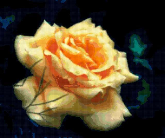 Ориентировочно так, схема вышивки «&2689», созданная автором Axlamonka, будет выглядеть при отшиве на канве. Размер данной вышивки равен 190x159 крестов, при этом используется 71 цветов. Ключевые слова, по которым можно найти эту схему: цветок, чайная роза. Также, вы можете взглянуть на оригинальную картинку, соответствующую данной схеме вышивки.