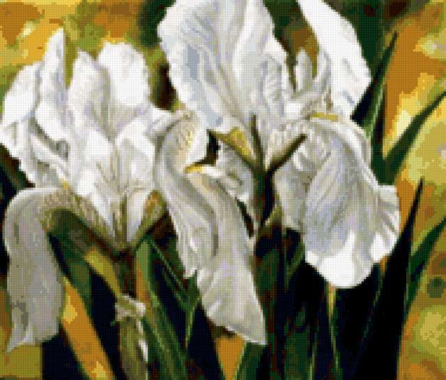 Ориентировочно так, схема вышивки «&4701», созданная автором Axlamonka, будет выглядеть при отшиве на канве. Размер данной вышивки равен 190x162 крестов, при этом используется 69 цветов. Ключевые слова, по которым можно найти эту схему: картина, цветы, ирисы. Также, вы можете взглянуть на оригинальную картинку, соответствующую данной схеме вышивки.