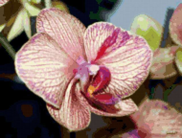 Ориентировочно так, схема вышивки «&532», созданная автором Axlamonka, будет выглядеть при отшиве на канве. Размер данной вышивки равен 190x144 крестов, при этом используется 77 цветов. Ключевые слова, по которым можно найти эту схему: цветок, орхидея. Также, вы можете взглянуть на оригинальную картинку, соответствующую данной схеме вышивки.
