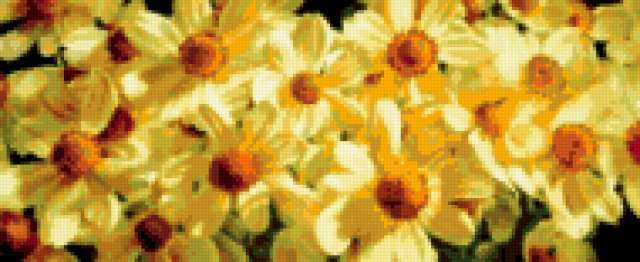 Ориентировочно так, схема вышивки «&5358», созданная автором Axlamonka, будет выглядеть при отшиве на канве. Размер данной вышивки равен 190x78 крестов, при этом используется 56 цветов. Ключевые слова, по которым можно найти эту схему: бордюр, ромашки. Также, вы можете взглянуть на оригинальную картинку, соответствующую данной схеме вышивки.