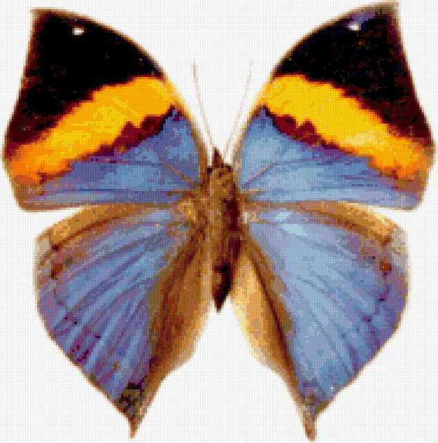 Ориентировочно так, схема вышивки «&5410», созданная автором Axlamonka, будет выглядеть при отшиве на канве. Размер данной вышивки равен 188x190 крестов, при этом используется 74 цветов. Ключевые слова, по которым можно найти эту схему: бабочка, подушка. Также, вы можете взглянуть на оригинальную картинку, соответствующую данной схеме вышивки.