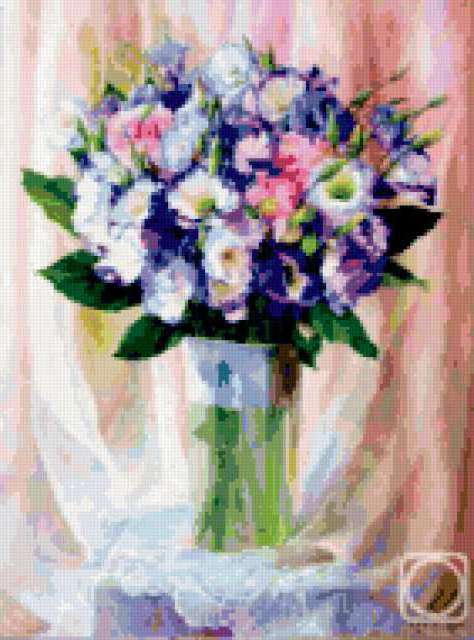 Ориентировочно так, схема вышивки «&6261», созданная автором Axlamonka, будет выглядеть при отшиве на канве. Размер данной вышивки равен 141x190 крестов, при этом используется 84 цветов. Ключевые слова, по которым можно найти эту схему: цветок, натюрморт, картина. Также, вы можете взглянуть на оригинальную картинку, соответствующую данной схеме вышивки.