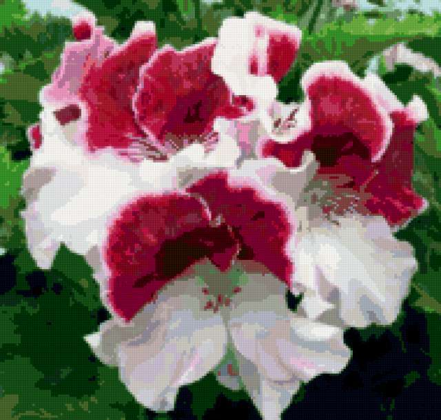 Ориентировочно так, схема вышивки «&6268», созданная автором Axlamonka, будет выглядеть при отшиве на канве. Размер данной вышивки равен 190x181 крестов, при этом используется 59 цветов. Ключевые слова, по которым можно найти эту схему: цветок, герань. Также, вы можете взглянуть на оригинальную картинку, соответствующую данной схеме вышивки.