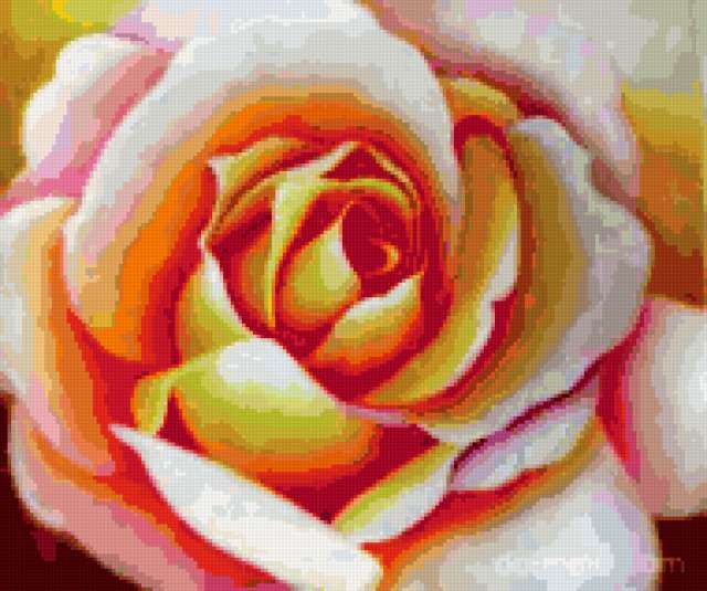 Ориентировочно так, схема вышивки «&6272», созданная автором Axlamonka, будет выглядеть при отшиве на канве. Размер данной вышивки равен 190x159 крестов, при этом используется 68 цветов. Ключевые слова, по которым можно найти эту схему: цветок, роза. Также, вы можете взглянуть на оригинальную картинку, соответствующую данной схеме вышивки.
