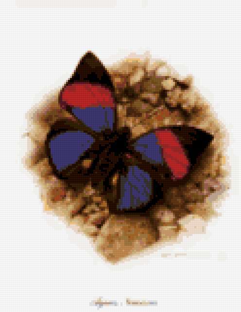 Ориентировочно так, схема вышивки «&6336», созданная автором Axlamonka, будет выглядеть при отшиве на канве. Размер данной вышивки равен 124x160 крестов, при этом используется 35 цветов. Ключевые слова, по которым можно найти эту схему: бабочка. Также, вы можете взглянуть на оригинальную картинку, соответствующую данной схеме вышивки.