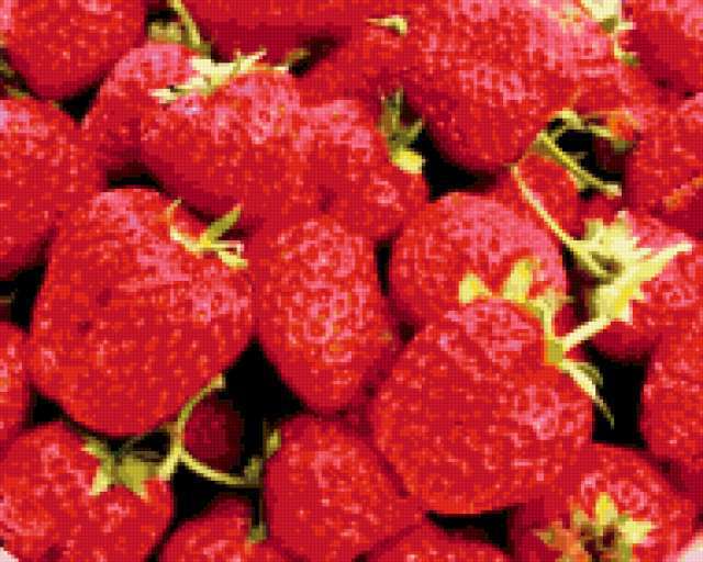 Ориентировочно так, схема вышивки «&636», созданная автором Axlamonka, будет выглядеть при отшиве на канве. Размер данной вышивки равен 190x152 крестов, при этом используется 49 цветов. Ключевые слова, по которым можно найти эту схему: ягоды, клубника. Также, вы можете взглянуть на оригинальную картинку, соответствующую данной схеме вышивки.
