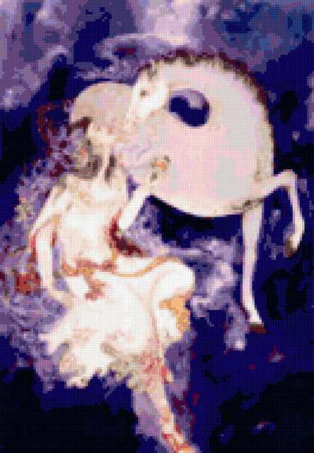 Ориентировочно так, схема вышивки «&6417», созданная автором Axlamonka, будет выглядеть при отшиве на канве. Размер данной вышивки равен 132x190 крестов, при этом используется 58 цветов. Ключевые слова, по которым можно найти эту схему: девушка, лошадка. Также, вы можете взглянуть на оригинальную картинку, соответствующую данной схеме вышивки.