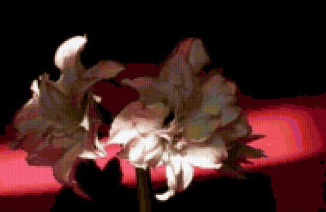 Ориентировочно так, схема вышивки «&644», созданная автором Axlamonka, будет выглядеть при отшиве на канве. Размер данной вышивки равен 190x124 крестов, при этом используется 61 цветов. Ключевые слова, по которым можно найти эту схему: амариллис, натюрморт. Также, вы можете взглянуть на оригинальную картинку, соответствующую данной схеме вышивки.