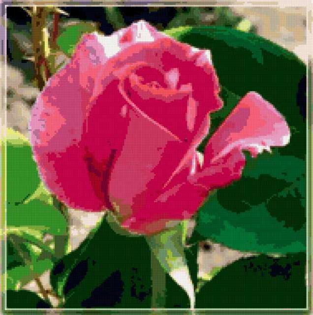 Ориентировочно так, схема вышивки «&863», созданная автором Axlamonka, будет выглядеть при отшиве на канве. Размер данной вышивки равен 189x190 крестов, при этом используется 60 цветов. Ключевые слова, по которым можно найти эту схему: цветок, роза, подушка. Также, вы можете взглянуть на оригинальную картинку, соответствующую данной схеме вышивки.