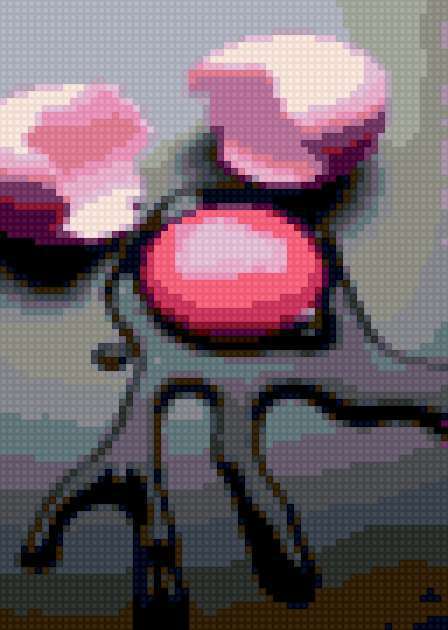 Ориентировочно так, схема вышивки «)))», созданная автором tatevik-68, будет выглядеть при отшиве на канве. Размер данной вышивки равен 64x90 крестов, при этом используется 27 цветов. К несчастью, автор не назначил для схемы ключевые слова. Также, вы можете взглянуть на оригинальную картинку, соответствующую данной схеме вышивки.