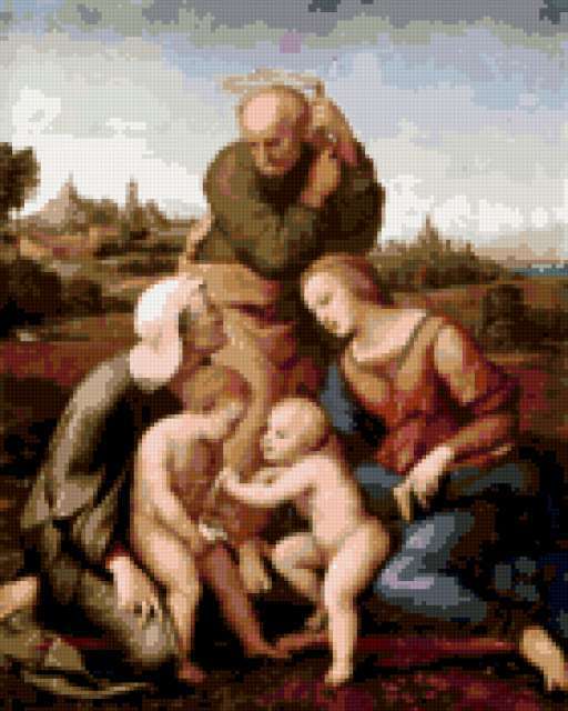 Ориентировочно так, схема вышивки «***», созданная автором milacha974, будет выглядеть при отшиве на канве. Размер данной вышивки равен 140x175 крестов, при этом используется 44 цветов. Ключевые слова, по которым можно найти эту схему: религия. Также, вы можете взглянуть на оригинальную картинку, соответствующую данной схеме вышивки.