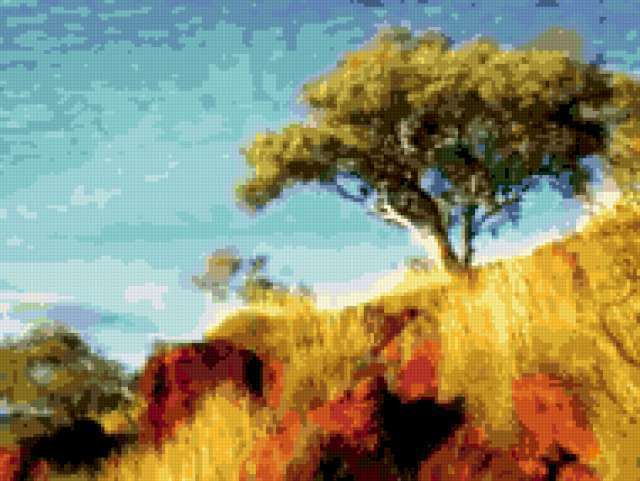 Ориентировочно так, схема вышивки «***», созданная автором gala1966, будет выглядеть при отшиве на канве. Размер данной вышивки равен 190x143 крестов, при этом используется 60 цветов. Ключевые слова, по которым можно найти эту схему: природа. Также, вы можете взглянуть на оригинальную картинку, соответствующую данной схеме вышивки.