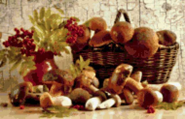 Ориентировочно так, схема вышивки «*0307», созданная автором Solneshko, будет выглядеть при отшиве на канве. Размер данной вышивки равен 190x123 крестов, при этом используется 70 цветов. Ключевые слова, по которым можно найти эту схему: осень. Также, вы можете взглянуть на оригинальную картинку, соответствующую данной схеме вышивки.