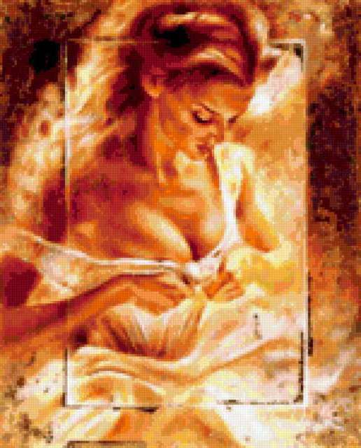 Ориентировочно так, схема вышивки «§154», созданная автором dimi122, будет выглядеть при отшиве на канве. Размер данной вышивки равен 150x186 крестов, при этом используется 60 цветов. Ключевые слова, по которым можно найти эту схему: люди. Также, вы можете взглянуть на оригинальную картинку, соответствующую данной схеме вышивки.