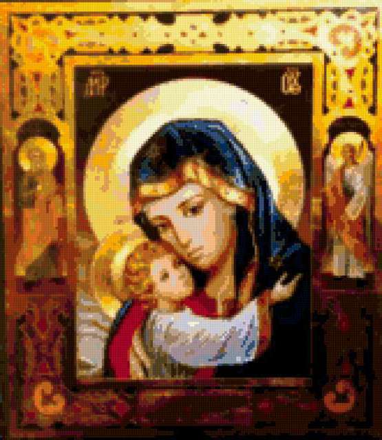 Ориентировочно так, схема вышивки «§741», созданная автором dimi122, будет выглядеть при отшиве на канве. Размер данной вышивки равен 165x190 крестов, при этом используется 54 цветов. Ключевые слова, по которым можно найти эту схему: религия. Также, вы можете взглянуть на оригинальную картинку, соответствующую данной схеме вышивки.