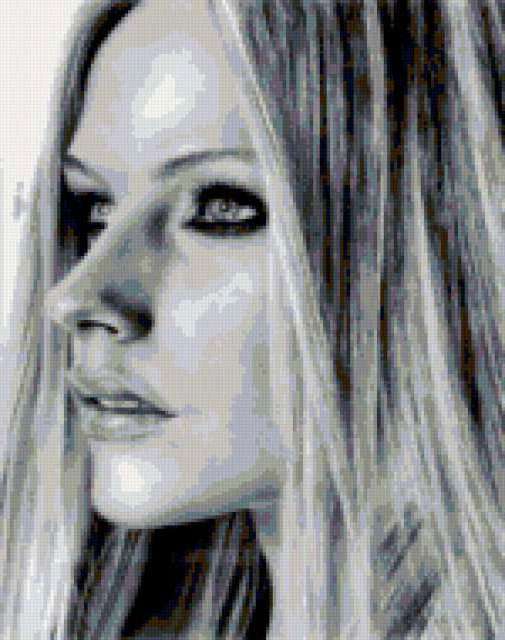 Ориентировочно так, схема вышивки «Аврилл лавин», созданная автором irin26ka, будет выглядеть при отшиве на канве. Размер данной вышивки равен 150x190 крестов, при этом используется 16 цветов. Ключевые слова, по которым можно найти эту схему: знаменитость. Также, вы можете взглянуть на оригинальную картинку, соответствующую данной схеме вышивки.