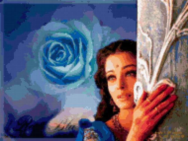 Ориентировочно так, схема вышивки «Айшвария Рай», созданная автором _Ira_, будет выглядеть при отшиве на канве. Размер данной вышивки равен 190x143 крестов, при этом используется 78 цветов. Ключевые слова, по которым можно найти эту схему: индия, кино, актёры, актрисы, айшвария рай. Также, вы можете взглянуть на оригинальную картинку, соответствующую данной схеме вышивки.