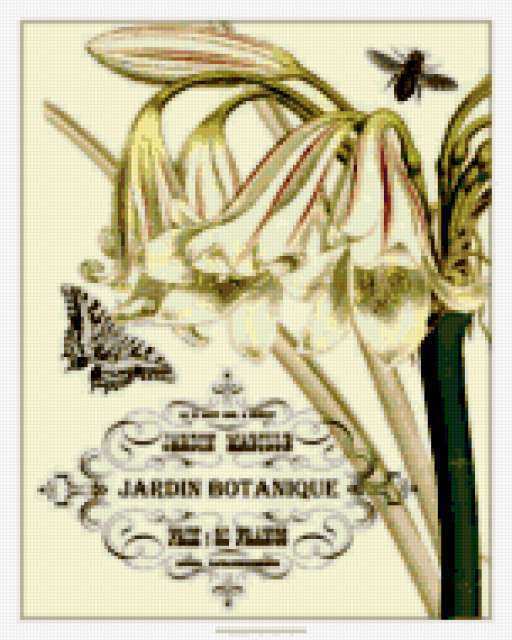 Ориентировочно так, схема вышивки «Амариллис 1», созданная автором eldi_22, будет выглядеть при отшиве на канве. Размер данной вышивки равен 152x190 крестов, при этом используется 67 цветов. Ключевые слова, по которым можно найти эту схему: амариллис, цветы. Также, вы можете взглянуть на оригинальную картинку, соответствующую данной схеме вышивки.