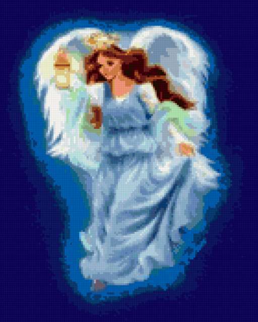 Ориентировочно так, схема вышивки «Ангел», созданная автором natanya, будет выглядеть при отшиве на канве. Размер данной вышивки равен 140x175 крестов, при этом используется 47 цветов. К несчастью, автор не назначил для схемы ключевые слова. Также, вы можете взглянуть на оригинальную картинку, соответствующую данной схеме вышивки.