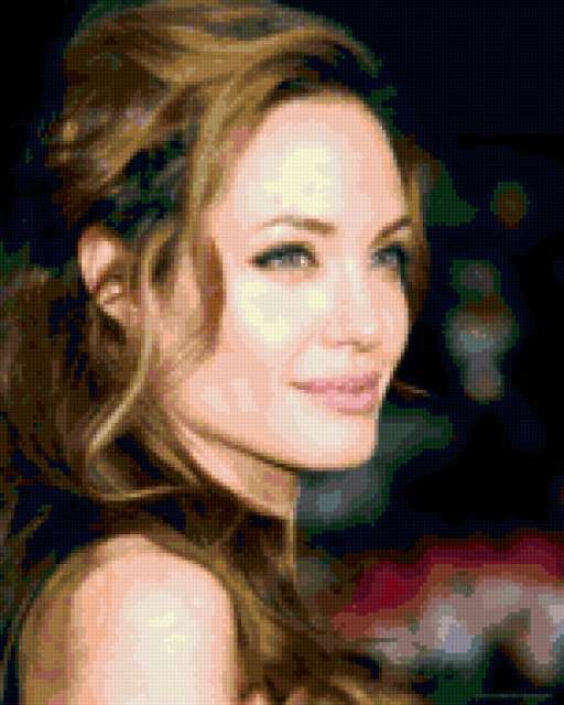 Ориентировочно так, схема вышивки «Анджелина Джоли», созданная автором 1_Lena, будет выглядеть при отшиве на канве. Размер данной вышивки равен 152x190 крестов, при этом используется 62 цветов. Ключевые слова, по которым можно найти эту схему: анджелина джоли, знаменитости. Также, вы можете взглянуть на оригинальную картинку, соответствующую данной схеме вышивки.