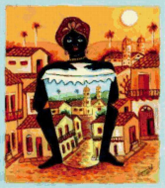 Ориентировочно так, схема вышивки «Африка», созданная автором mgalimosca, будет выглядеть при отшиве на канве. Размер данной вышивки равен 167x190 крестов, при этом используется 73 цветов. Ключевые слова, по которым можно найти эту схему: африка. Также, вы можете взглянуть на оригинальную картинку, соответствующую данной схеме вышивки.
