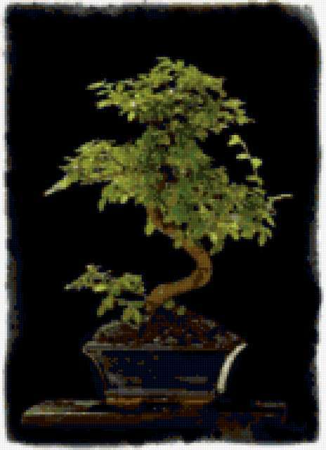 Ориентировочно так, схема вышивки «Бонсай-4», созданная автором RumaWka, будет выглядеть при отшиве на канве. Размер данной вышивки равен 138x190 крестов, при этом используется 48 цветов. Ключевые слова, по которым можно найти эту схему: дерево, горшок, цветы, флора. Также, вы можете взглянуть на оригинальную картинку, соответствующую данной схеме вышивки.