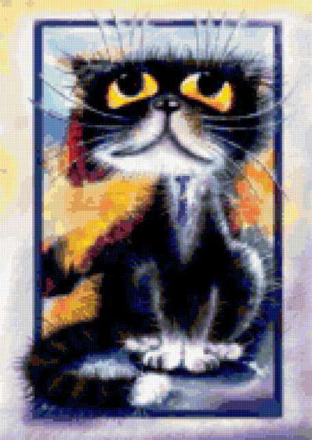 Ориентировочно так, схема вышивки «Борис Касьянов | Котярики», созданная автором avevstigneeva, будет выглядеть при отшиве на канве. Размер данной вышивки равен 135x190 крестов, при этом используется 78 цветов. Ключевые слова, по которым можно найти эту схему: живопись, картинки, детям, юмор, животные, кошки. Также, вы можете взглянуть на оригинальную картинку, соответствующую данной схеме вышивки.